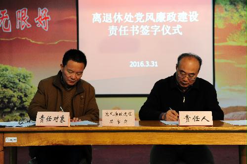 3月31日,在离退休处二楼多功能厅,离退休党工委举行了党风廉政建设责任书签订仪式。