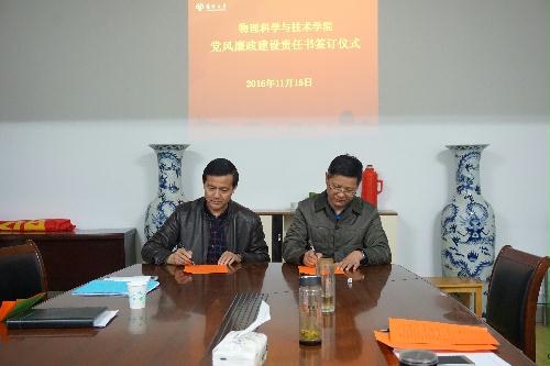 11月16日下午,物理科学与技术学院召开2016年秋学期党风廉政建设专题会议。院党委书记王春雨主持会议并讲话。全体院领导出席会议并与责任对象签订党风廉政建设责任书。全体科级干部、系部(中心)主任、支部书记参加会议。