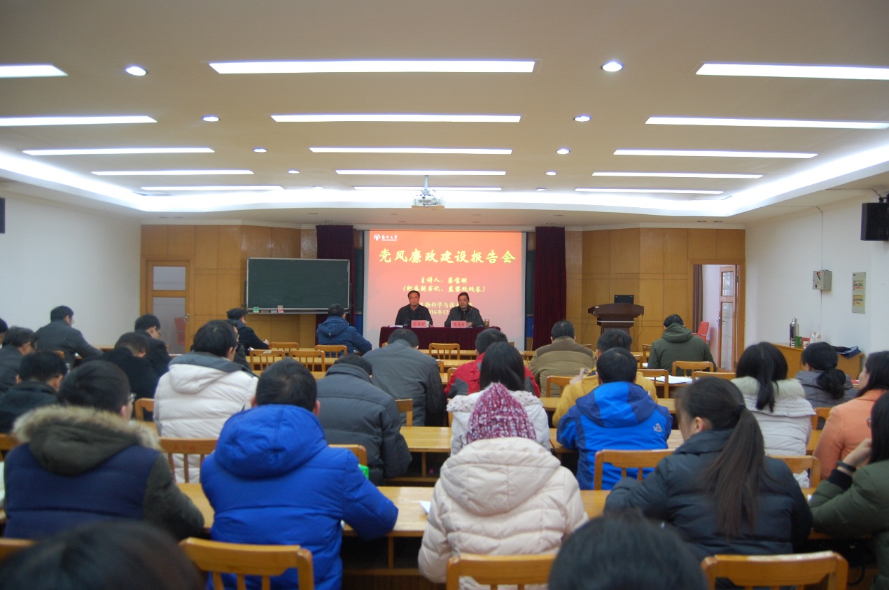 日前,生物科学与技术学院举行党风廉政建设报告会。校纪委副书记、监察处处长蔡宝刚教授应邀作党风廉政建设专题报告。该院党委书记夏泽清主持报告会并讲话。全体院领导出席报告会。