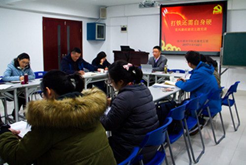 3月22日,海外教育学院直属党支部举办“打铁还需自身硬”党风廉政教育主题党课。支部书记蒋鸿青主讲党课。全院党员参加党课学习。