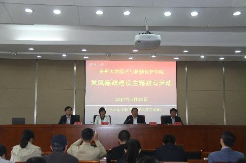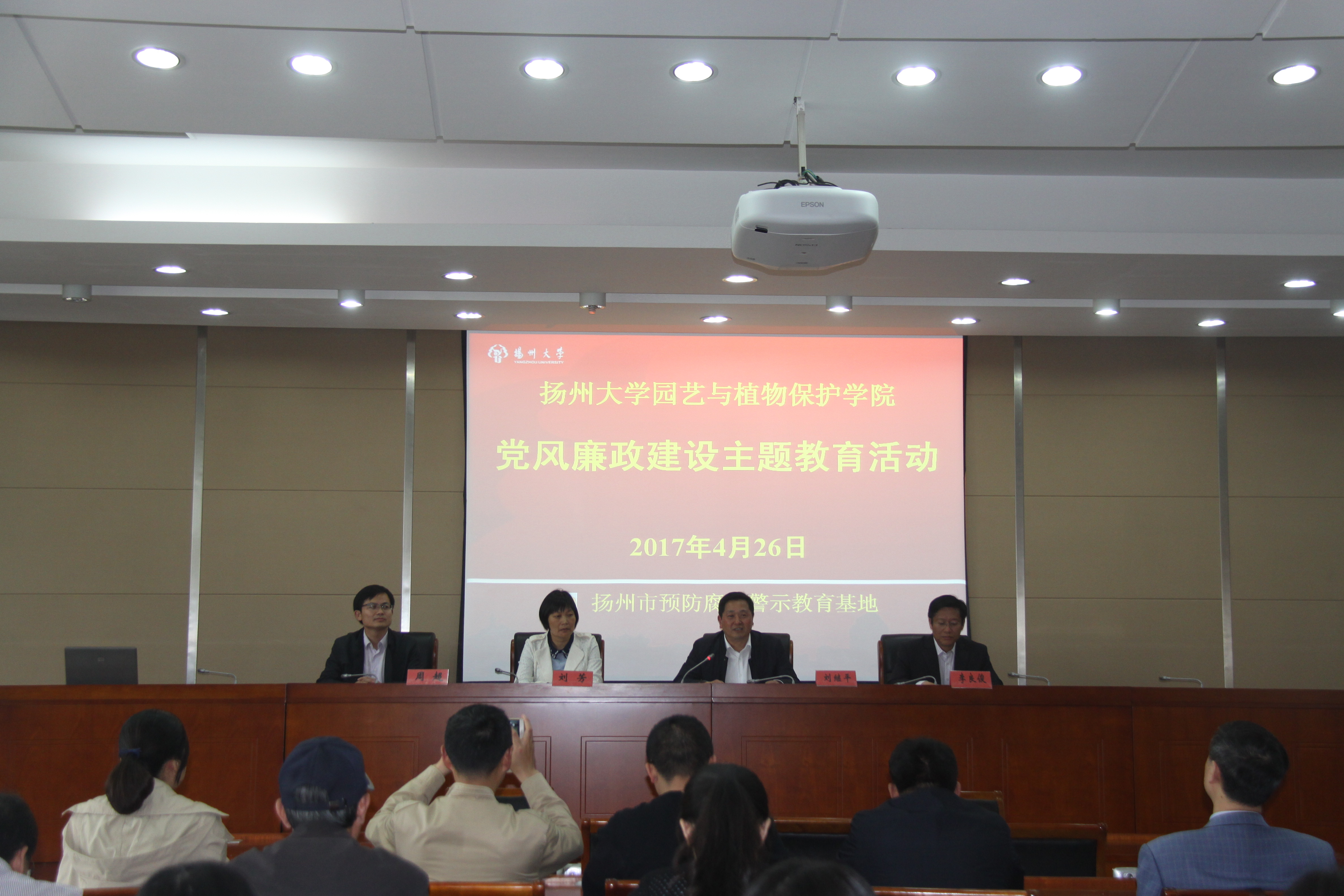 4月26日下午,园艺与植物保护学院赴扬州市预防腐败警示教育基地开展党风廉政建设专题廉政教育活动,全体院领导、系主任、工会主席、党支部书记及教工党员参加活动。