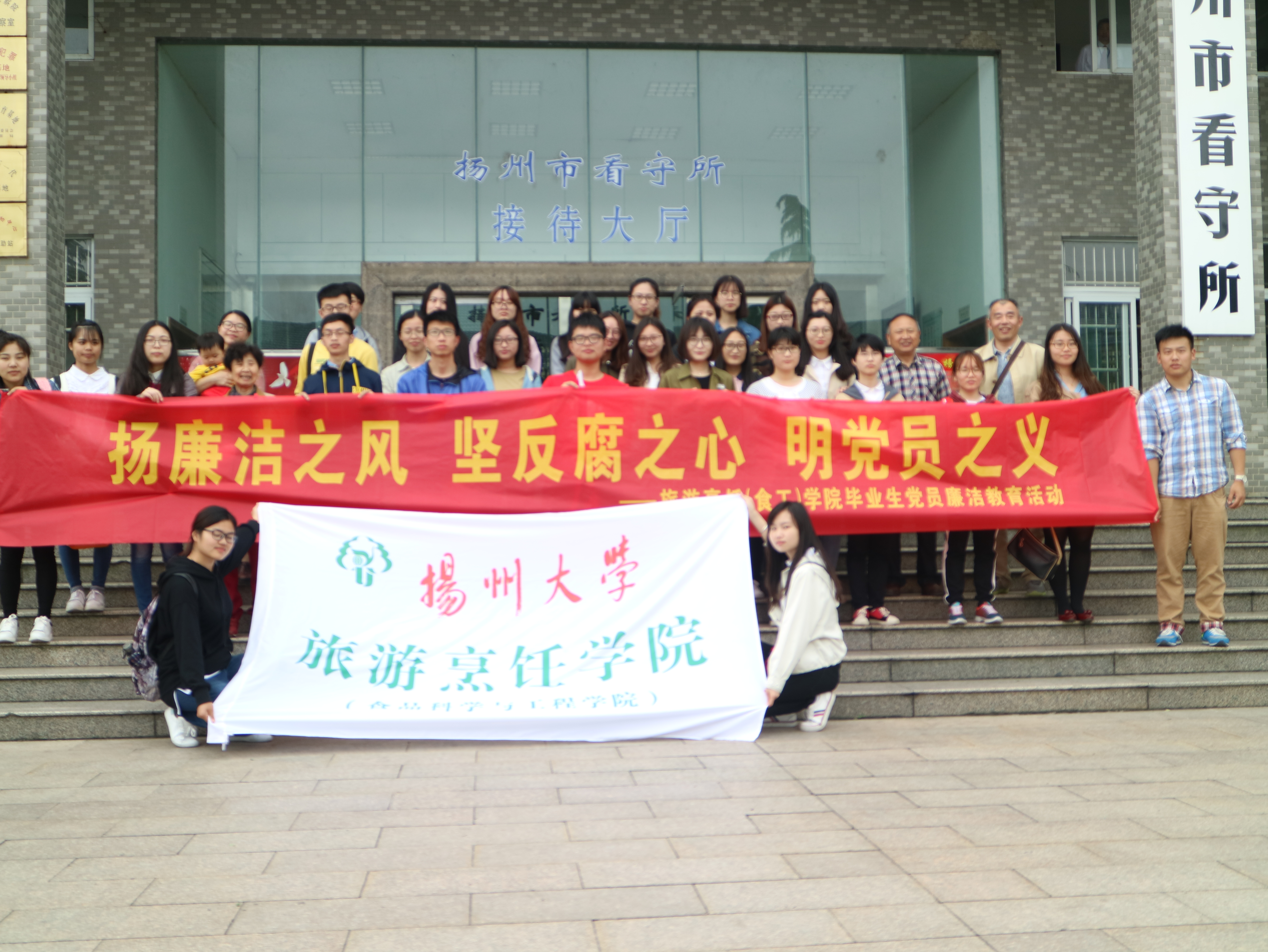 5月4日下午,旅游烹饪(食品科学与工程)学院30名毕业班学生党员赴扬州市戒毒所、行政拘留所、看守所等接受警示教育和廉洁教育。盐阜路离退休党总支、离退办、关工委有关老同志以及院党委纪检员、辅导员参加活动。