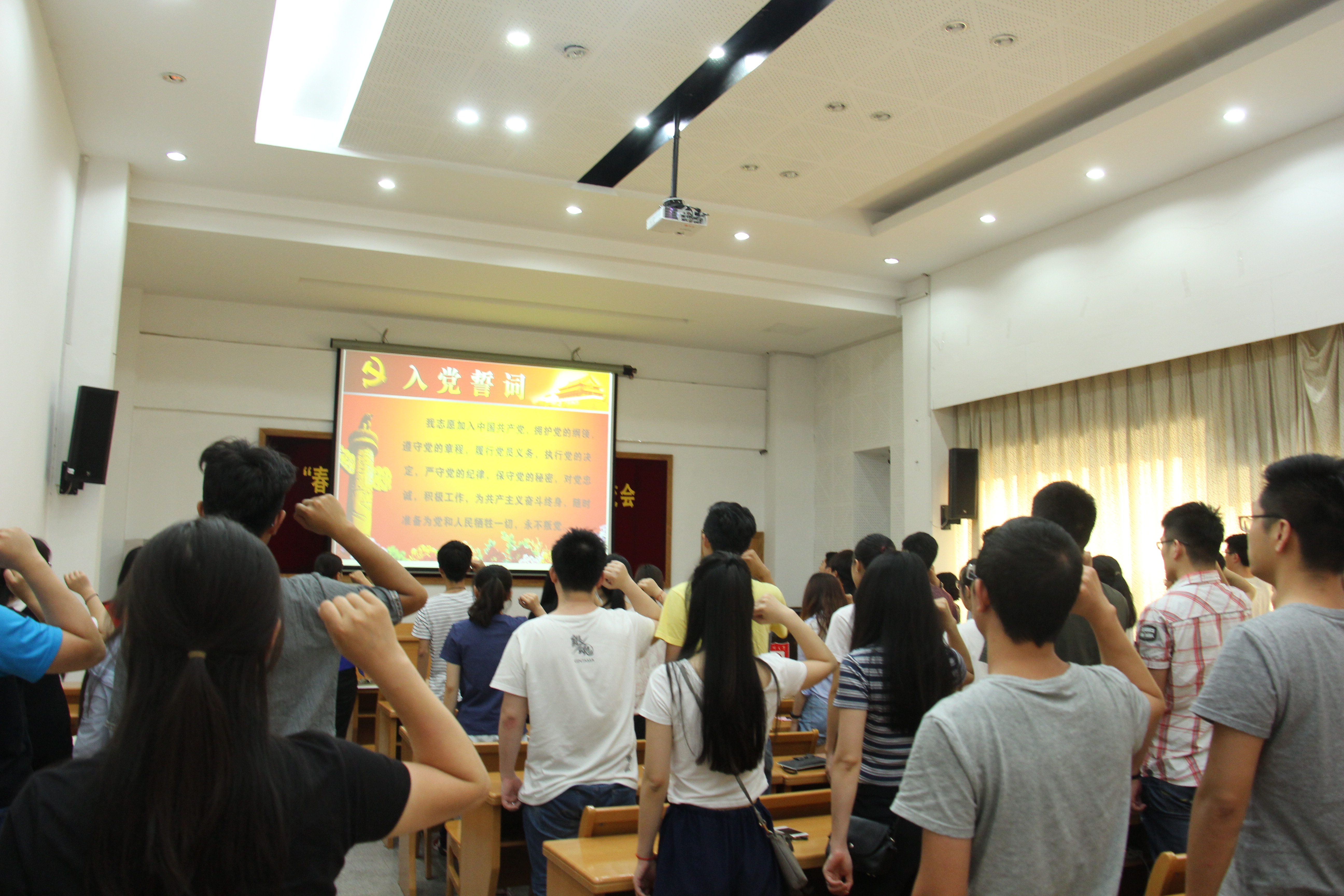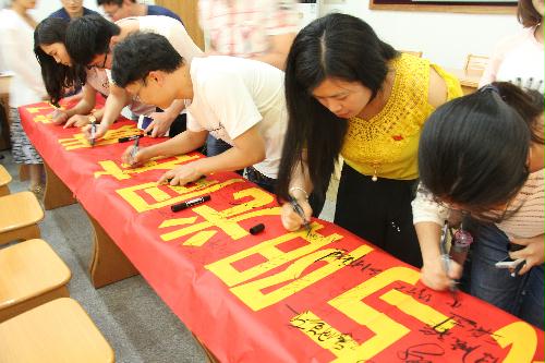 蔡丽娅希望全体毕业班党员谨记、切记、牢记党的纪律,自觉维护党中央的权威、维护党的团结、遵行组织程序、服从组织决定,以实际行动践行在党旗下的庄重承诺。最后,全体毕业生党员重温入党誓词,齐唱廉政歌曲“让清风与阳光同在”,并在“让清风与阳光同在,做一辈子合格党员”的横幅上庄严地签下自己的姓名。活动开始前,全体毕业生党员还一起参观了扬州廉政文化展示馆。