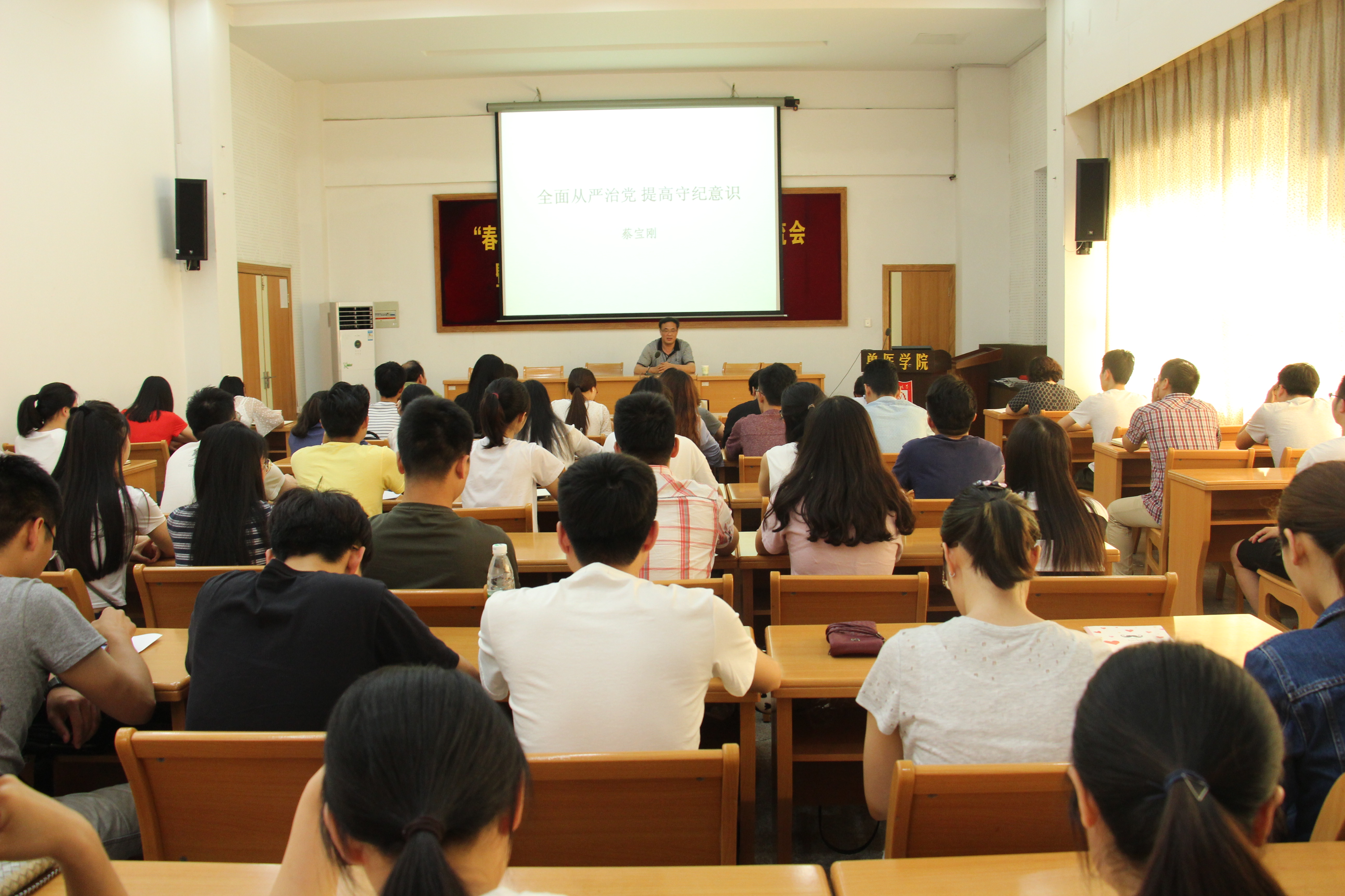 6月13日,兽医学院举办“让清风与阳光同在”毕业生党员廉政专题教育活动,全体毕业生党员及相关党支部书记共90余人参加活动。校纪委副书记、监察处处长蔡宝刚教授应邀作专题报告。院党委蔡丽娅书记主持报告会。