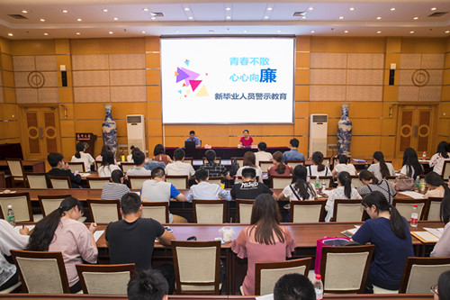 6月13日,纪委、组织部(党校)、学工部、研工部联合举办第十四期毕业生廉洁从政专题教育班。学校2017届毕业生中省委组织部选调生候选人,国家、省公务员候选人及已达到面试条件的大学生“村官”等98名“准公职人员”参加培训。