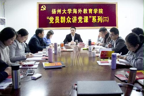 11月30日下午,海外教育学院直属党支部举办“党员群众讲党课”暨理论学习中心组(扩大)学习会议,校纪委委员、支部书记蒋鸿青主持党课和学习活动。