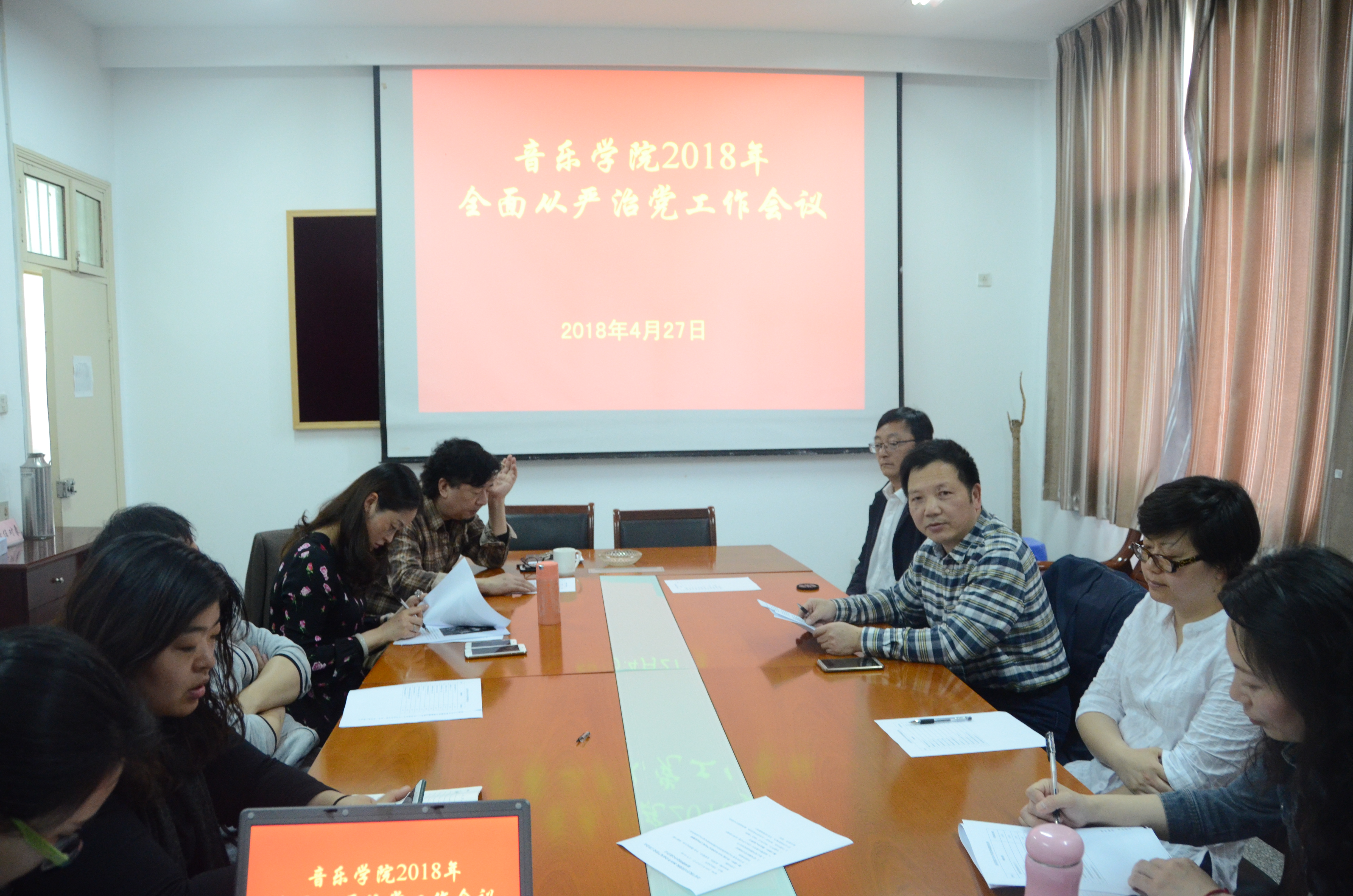 4月27日上午,音乐学院召开党委理论中心组学习(扩大)会议。会议由院党书记李向阳主持。全体院领导、党委委员、专业(教研室)主任、科级干部参加会议。