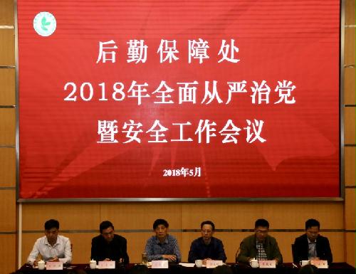 5月9日下午,后勤保障处在荷花池校区教学主楼二楼多功能厅召开2018年全面从严治党暨安全工作会议。处长吴春明出席会议并讲话。党委书记陶春明传达学习学校相关会议精神并部署2018年全面从严治党暨校园安全综合治理工作。党委副书记李永刚总结2017年全面从严治党和校园安全综合治理工作。副处长朱春生主持会议。