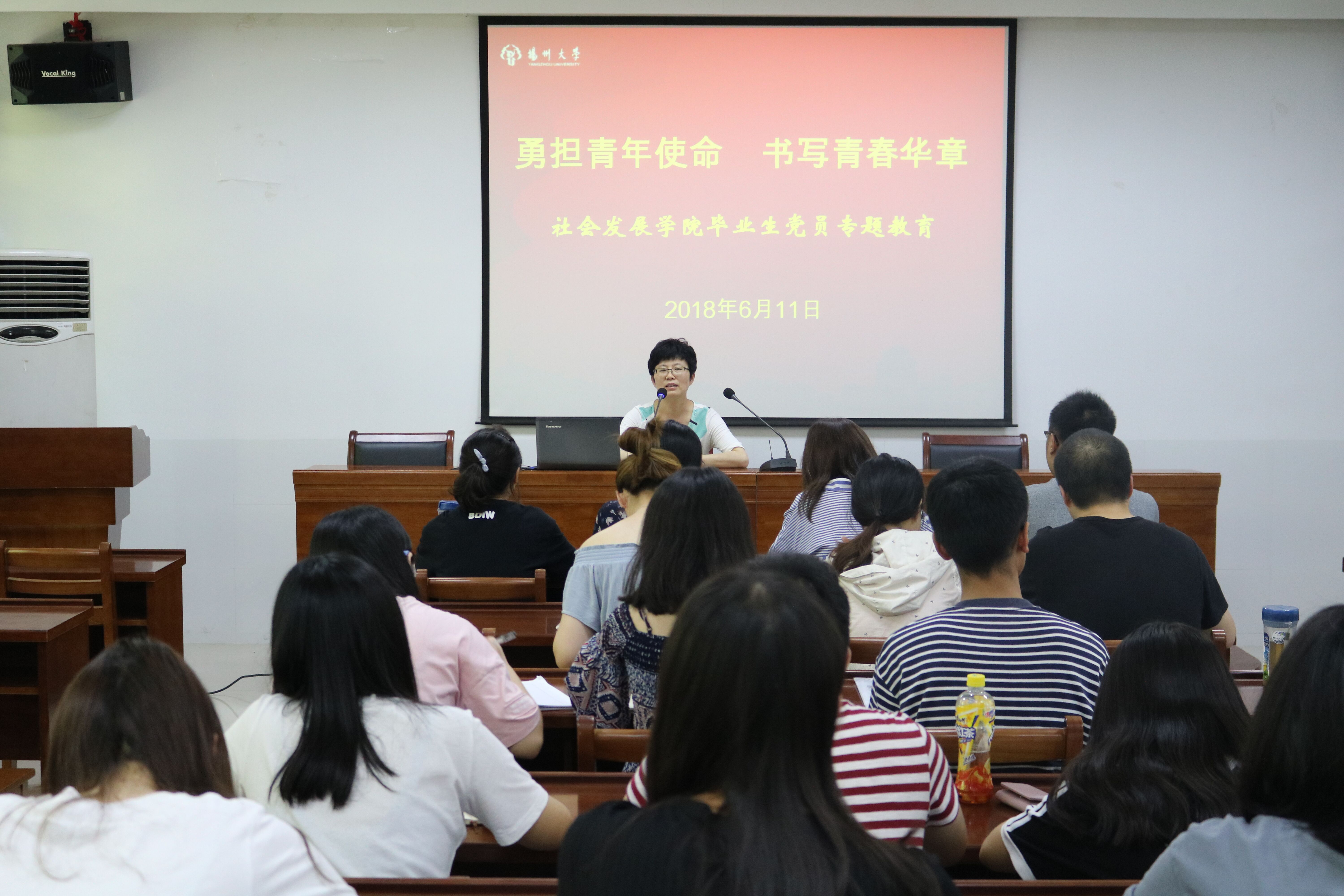 6月11日下午,社会发展学院举办“勇担青年使命 书写青春华章”专题教育活动。院党委书记吕红梅出席活动并讲话。全体2018届毕业生党员参加活动。