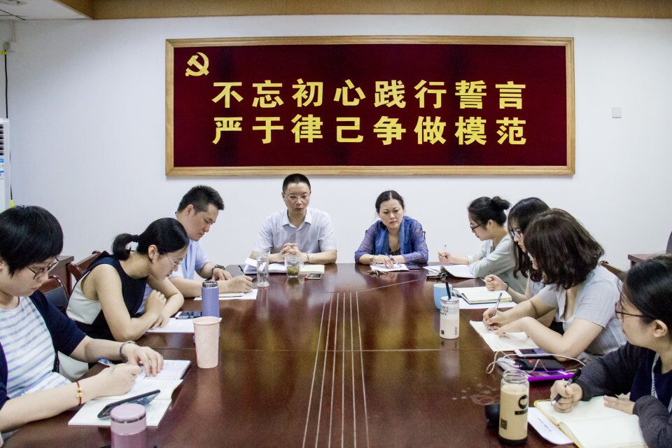 7月11日下午,海外教育学院召开理论学习中心组(扩大)会暨党员大会,以“不忘初心践行誓言 严于律己争做模范”为主题进行集中学习。支部书记蒋鸿青主持学习活动。