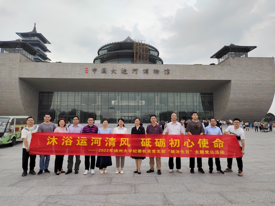 在“政治生日”的“一场活动鼓干劲”环节,全体党员赴扬州中国大运河博物馆、运河三湾生态文化公园开展“沐浴运河清风,砥砺初心使命”主题教育。大家系统了解了大运河的千年历史,领略了大运河的文化底蕴与独特魅力,充分感受中国古代先贤们的伟大创造和无穷智慧,用心体会习近平总书记关于把大运河文化统筹保护好、传承好、利用好的重要指示。全体党员循着习近平总书记在三湾生态文化公园的足迹,重温习近平总书记视察江苏和扬州的重要讲话精神,强化把“好地方”建设得越来越好的责任担当。通过“政治生日”主题党日活动,大家接受了一次生动的爱国主义教育,在思想上受到了一次深刻的精神洗礼。