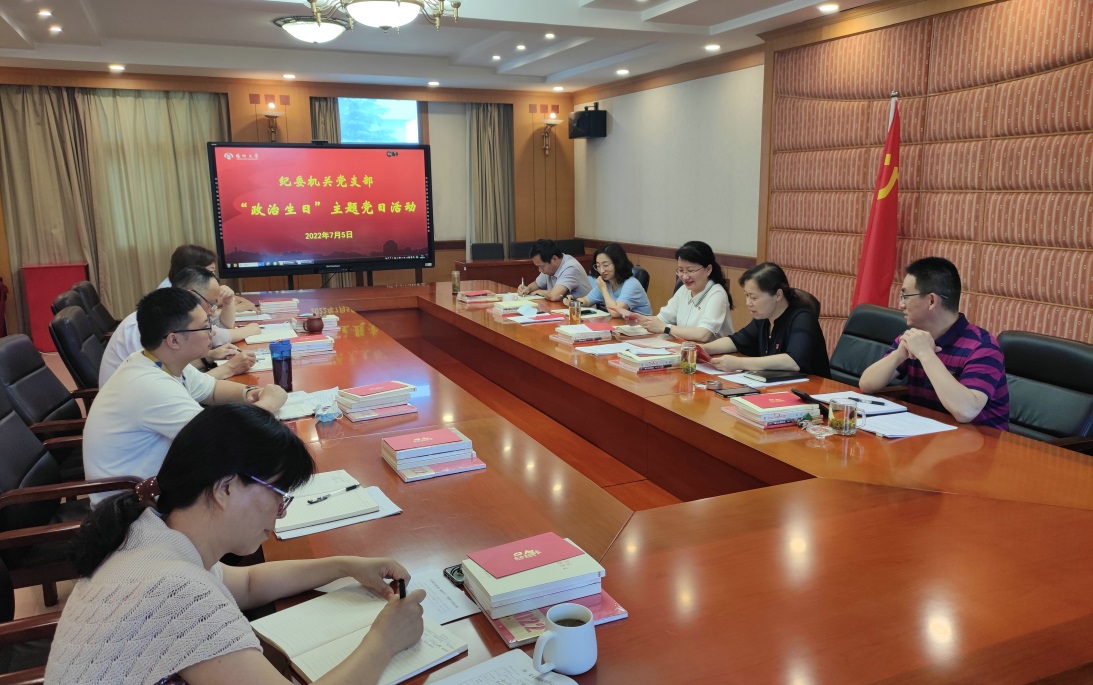为进一步强化党员身份意识、责任意识和宗旨意识,增强党支部凝聚力、战斗力和号召力,弘扬伟大建党精神,推动党史学习教育走深走实,7月5日,纪委机关党支部组织开展2022年度“政治生日”主题党日活动。纪委书记、派驻监察专员周琴参加活动。