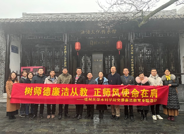 12月9日为国际反腐败日,水利科学与工程学院党委赴江都邵伯镇爱国主义教育基地和廉政教育基地,开展“树师德廉洁从教,正师风使命在肩”专题活动。大家在邵伯保卫战烈士陵园瞻仰了革命烈士墓、重温了入党誓词,在运河廉文化传承馆品读了清官廉吏的廉洁事迹,进一步筑牢理想信念,提升党性修养。
