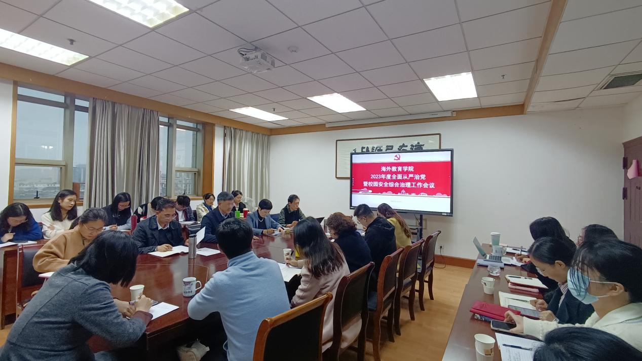 4月4日,海外教育学院召开2023年度全面从严治党工作会议。会议传达了学校全面从严治党工作会议精神,签订了党风廉政责任书、意识形态责任书。会议强调,要压紧压实政治责任,始终保持政治清醒,增强责任意识;要严明政治纪律,筑牢思想防线,抓好党风廉政建设;要切实提高管理效能,把全面从严治党的政治实践转化为推动学校来华留学教育提质增效的强大动能。