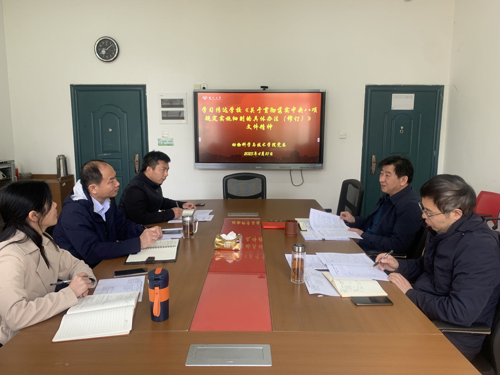 4月10日,动物科学与技术学院党委理论学习中心组召开专题会议,传达学习学校《关于贯彻落实中央八项规定实施细则的具体办法(修订)》。会议强调要牢固树立底线意识,切实增强遵守中央八项规定精神的思想自觉和行动自觉,落实立德树人根本任务,营造风清气正的政治生态,保障学院事业高质量快速发展。