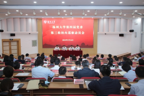 5月16日上午,校第四届党委第三轮校内巡察动员会在荷花池校区逸夫馆报告厅召开。校党委书记、校党委巡察工作领导小组组长焦新安出席会议并讲话。校长、领导小组副组长丁建宁宣读巡察组、专项检查组授权任职和任务分工。校党委副书记、领导小组副组长周如军主持会议。校纪委书记、派驻监察专员、领导小组副组长邱庆峰解读巡察工作方案。全体在扬校领导、党委常委出席会议。