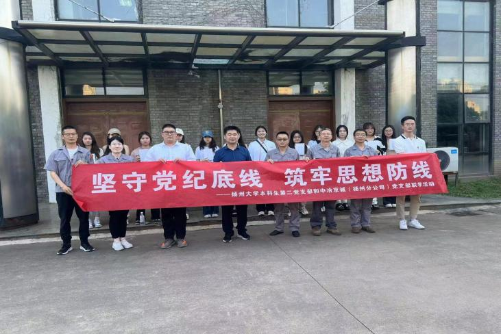 日前,为推动党纪学习教育走深走实,商学院学生党支部先后赴扬州市烈士陵园和平山堂廉政教育基地开展党纪学习教育现场教学活动,与中冶京诚(扬州)冶金科技产业有限公司、汊河街道建华村农业第一党支部开展联学共建活动。