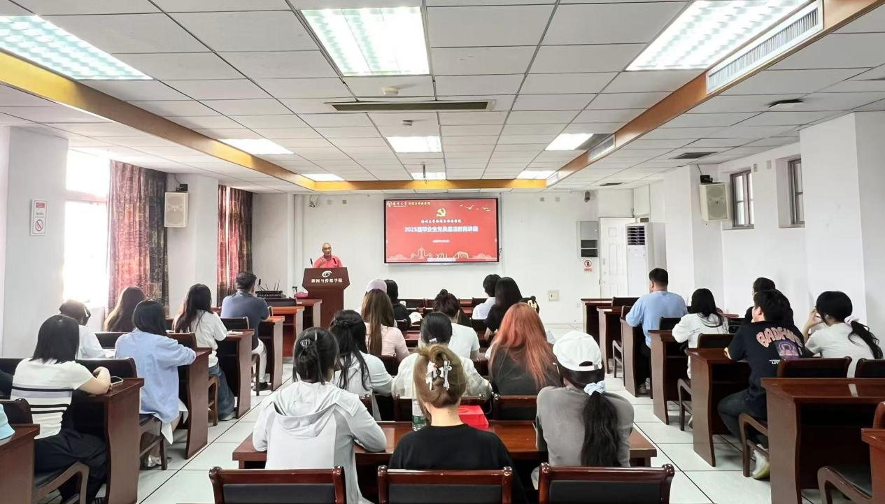 日前,文学院、新传学院等二级党组织先后开展毕业生党员廉洁教育,分别赴警示教育基地开展现场教学、观看警示教育片、邀请校关工委理论宣讲团成员作专题讲座、重温了入党誓词。
