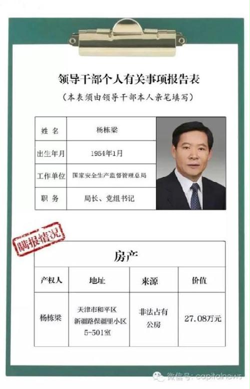 包括杨栋梁在内,以下8名领导干部在房产、年龄、婚姻、股票和护照等方面的个人事项报告,生动地说明了瞒报漏报的“禁区”。这些反面典型,广大党员干部切当引以为戒。