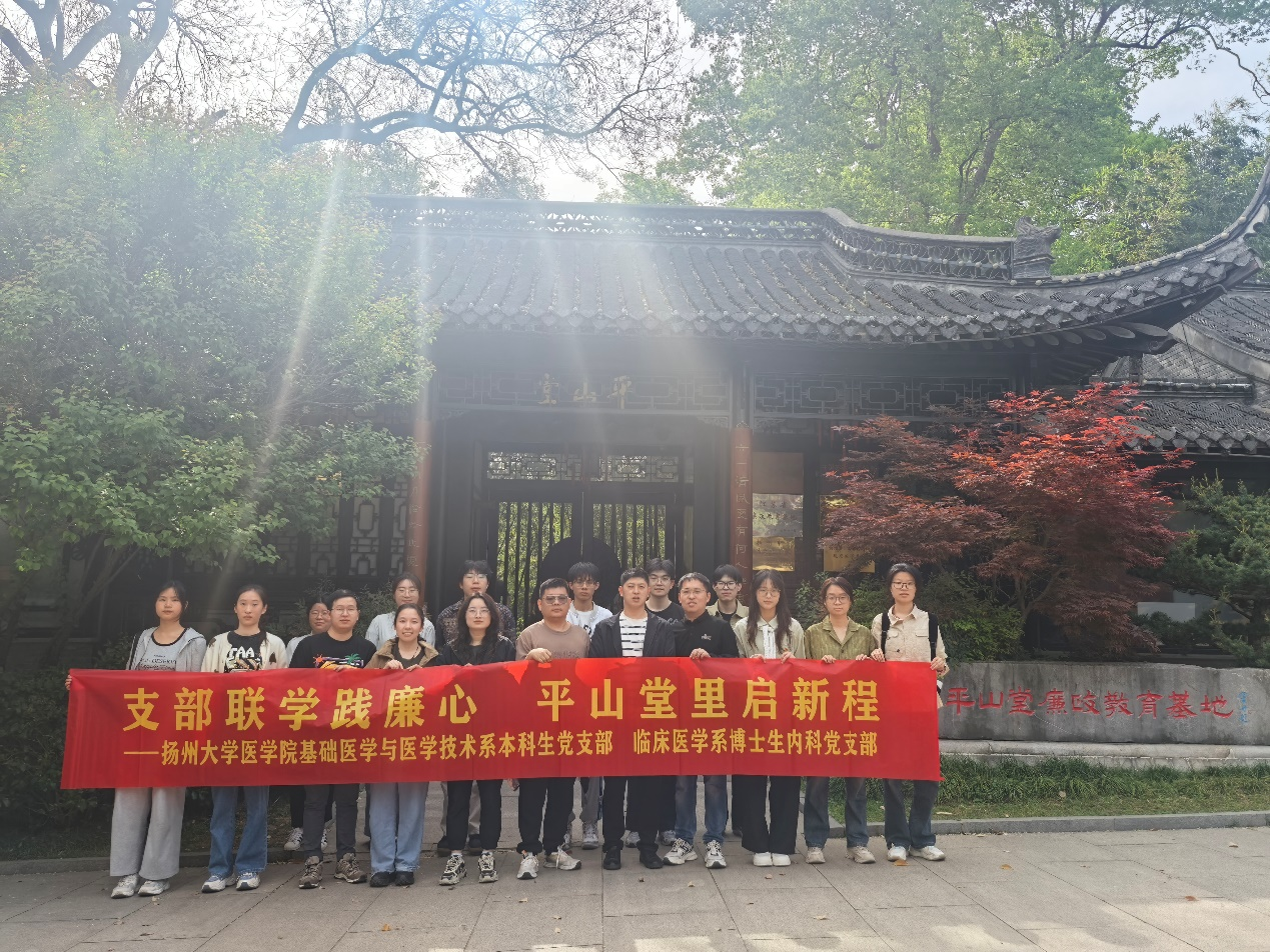 4月17日,医学院临床医学系博士生内科党支部与基础医学与医学技术系本科生党支部前往扬州市平山堂廉政教育基地,联合开展了“联学践廉心,平山堂里启新程”主题廉政教育活动。
