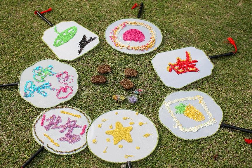 党员们以五谷为“颜料”、以镊子为“画笔”,在团扇上精心粘贴出“廉”字图腾、莲花等象征清正廉洁的图案,在书签上写下“愿母校桃李满园”“以廉为舟,行稳致远”等真挚话语,将对母校的感恩与个人的初心愿景镌刻于方寸之间。同时,郑重签名作出廉洁承诺。